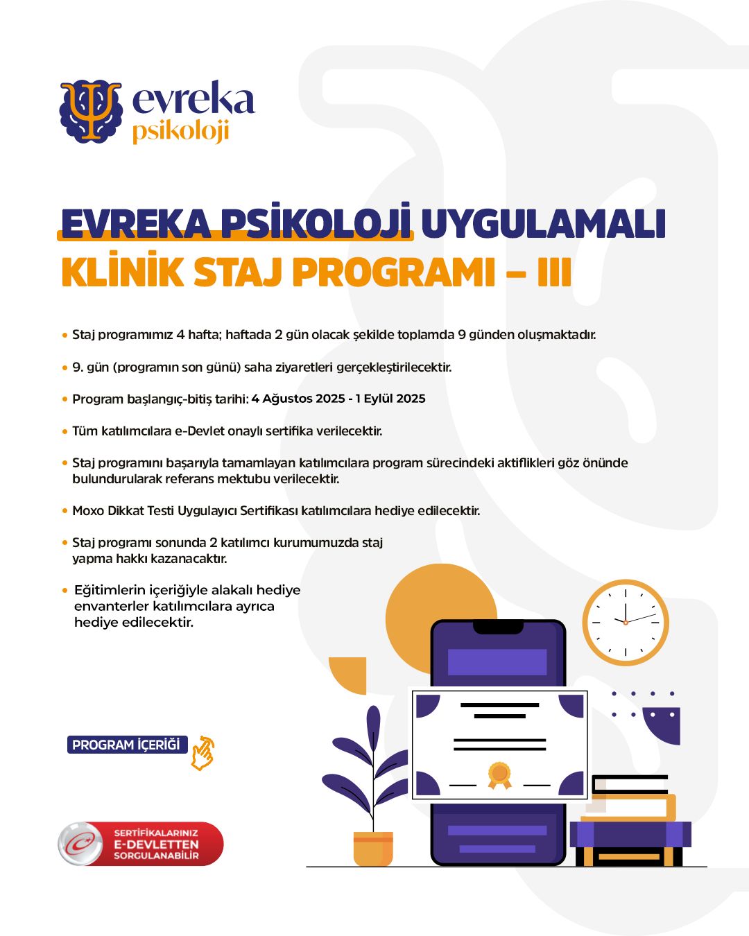 Psikoloji alanında çalışmayı amaçlayan meslektaşlarımızın gerçek yaşam deneyimi kazanabilmeleri ve alana güçlü bir başlangıç yapabilmeleri için geliştirdiğimiz uygulama temelli staj programı, 4 Ağustos – 1 Eylül 2025 tarihleri arasında sizlerle buluşuyor!